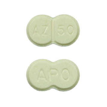 - APO-AZATHIOPRINE (azathioprine) 50 mg Tablets are pale yellow, peanut-shaped tablets, scored and engraved "AZ 50" on one side and "APO" on the other. APO-AZATHIOPRINE. In addition to azathioprine, each APO-AZATHIOPRINE Tablet contains the non-medicinal ingredients lactose, magnesium stearate, microcrystalline cellulose and starch.